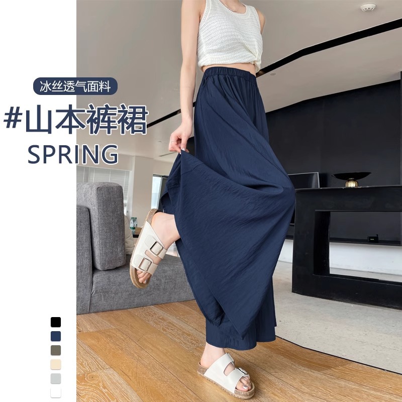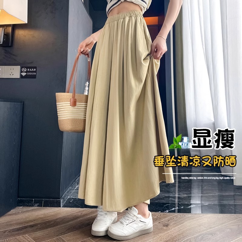氷糸山本キュロット女性の夏の薄いタイプの垂れ下がった9分のワイドパンツのスカートの涼しい日焼け止めのa字の半身の長いスカート