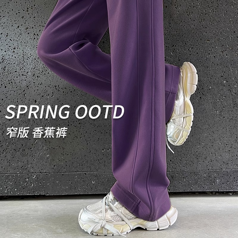 烏梅紫バナナワイドパンツ女性春秋2025新型レジャースポーツズボン