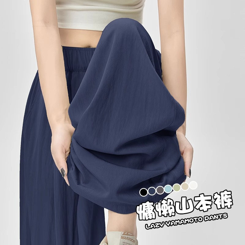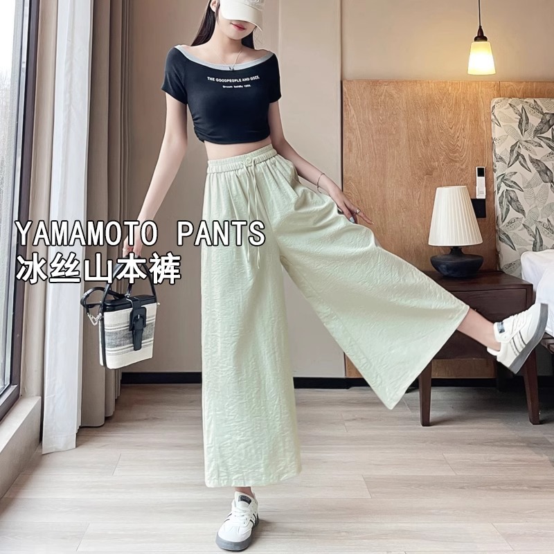 氷糸の山本ズボンの女性の夏の薄いタイプの2025ゆったりとしたカジュアルなハイウエストの垂れ下がった感の涼しい日焼け止めの8分のワイドパンツ