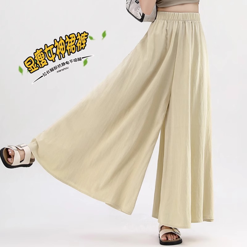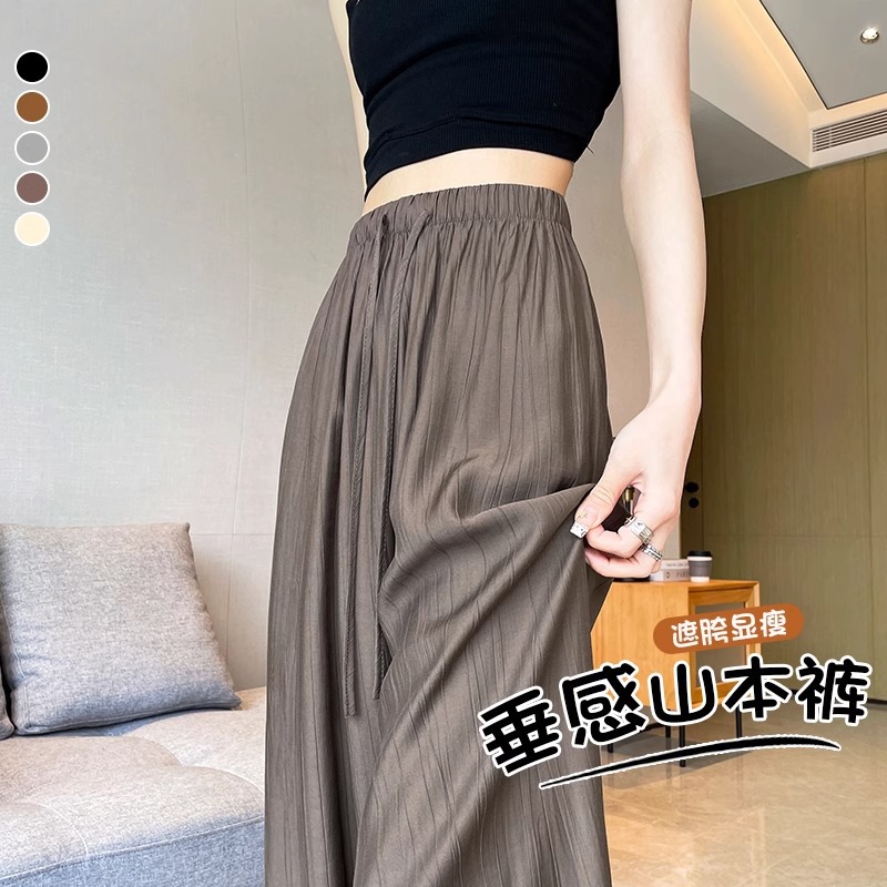 山本ズボンの女性の夏の薄いタイプの垂れ下がった感じの怠惰な筋の理感の2025新型のカジュアルなセクシーな感じの亜麻の氷の糸の広い足のズボン