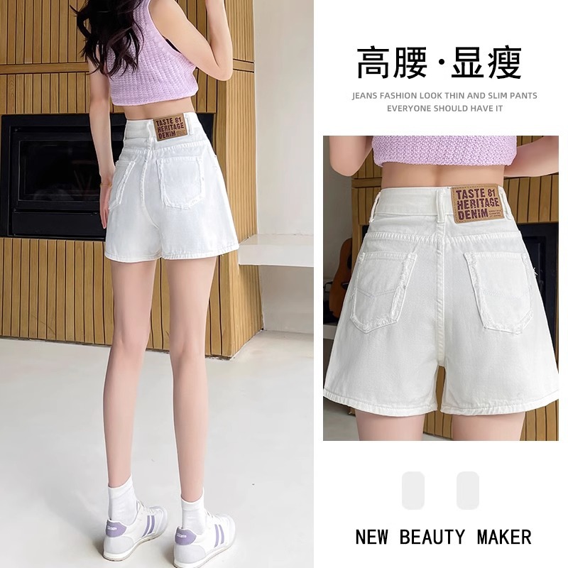 白いデニムのショートパンツの女性2025年夏の薄いタイプのハイウエストはやせています。