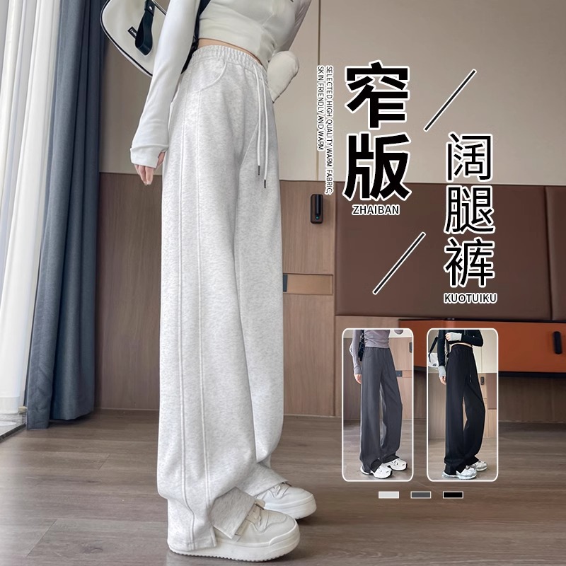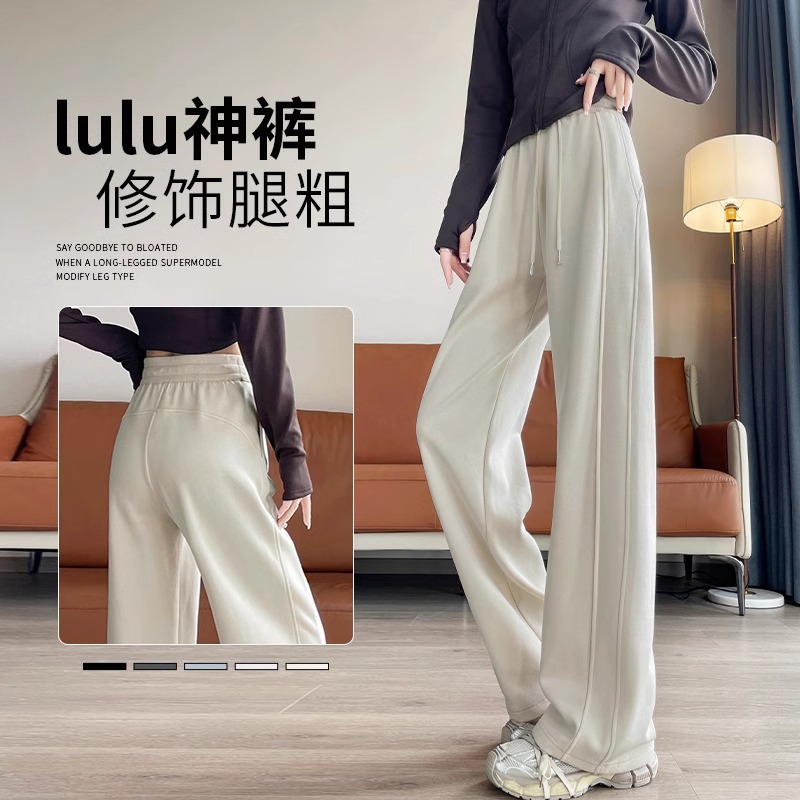 狭い版のワイドパンツの女性2025の新型の春と秋の薄いタイプはやせているスポーツのズボンのluluカジュアルなストレートのバナナのズボンを現します。