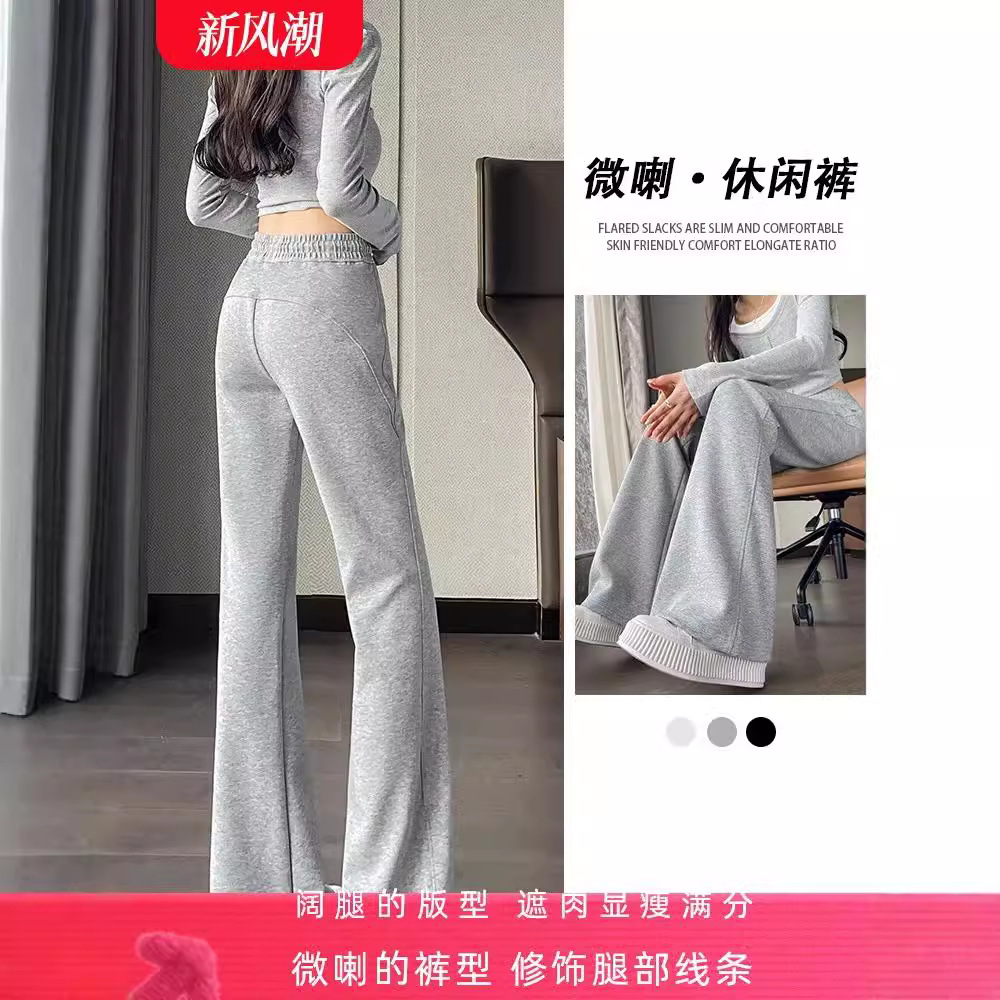 マイクロラッパ運動ズボンの女性のハイウエストの薄いタイプのアメリカ式の衛ズボンの春秋の復古の灰色はやせているレジャーの馬蹄のラッパのズボンを現します。