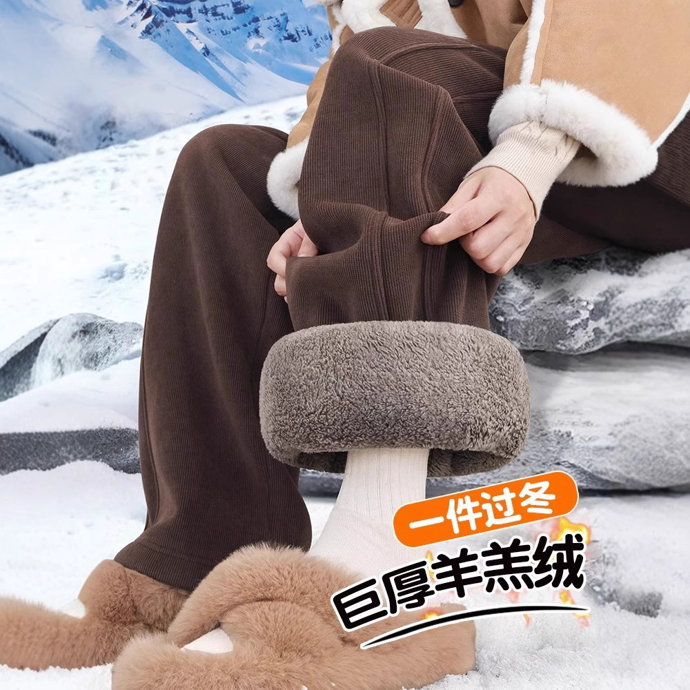ベルベットの厚いワイドパンツの女性の冬の垂直感のあるスポーツパンツの子羊のベルベットの外に防風綿のズボンの狭いバージョンのストレートパンツを着ています