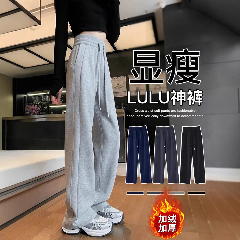 スポーツパンツの女性秋冬とベルベット2024の新しいカジュアルな高腰の小柄なストレートパンツの狭いバージョンのバナナのワイドパンツ