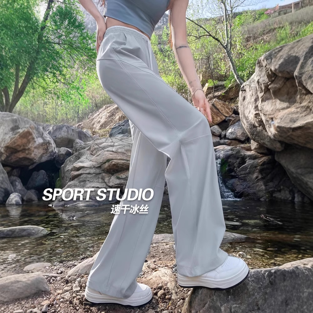 アイスシルク速乾性ワイドレッグパンツ女性の夏薄い 2025 新しいハイウエストスポーツグレーカジュアル防蚊パンツ日焼け止めパンツ