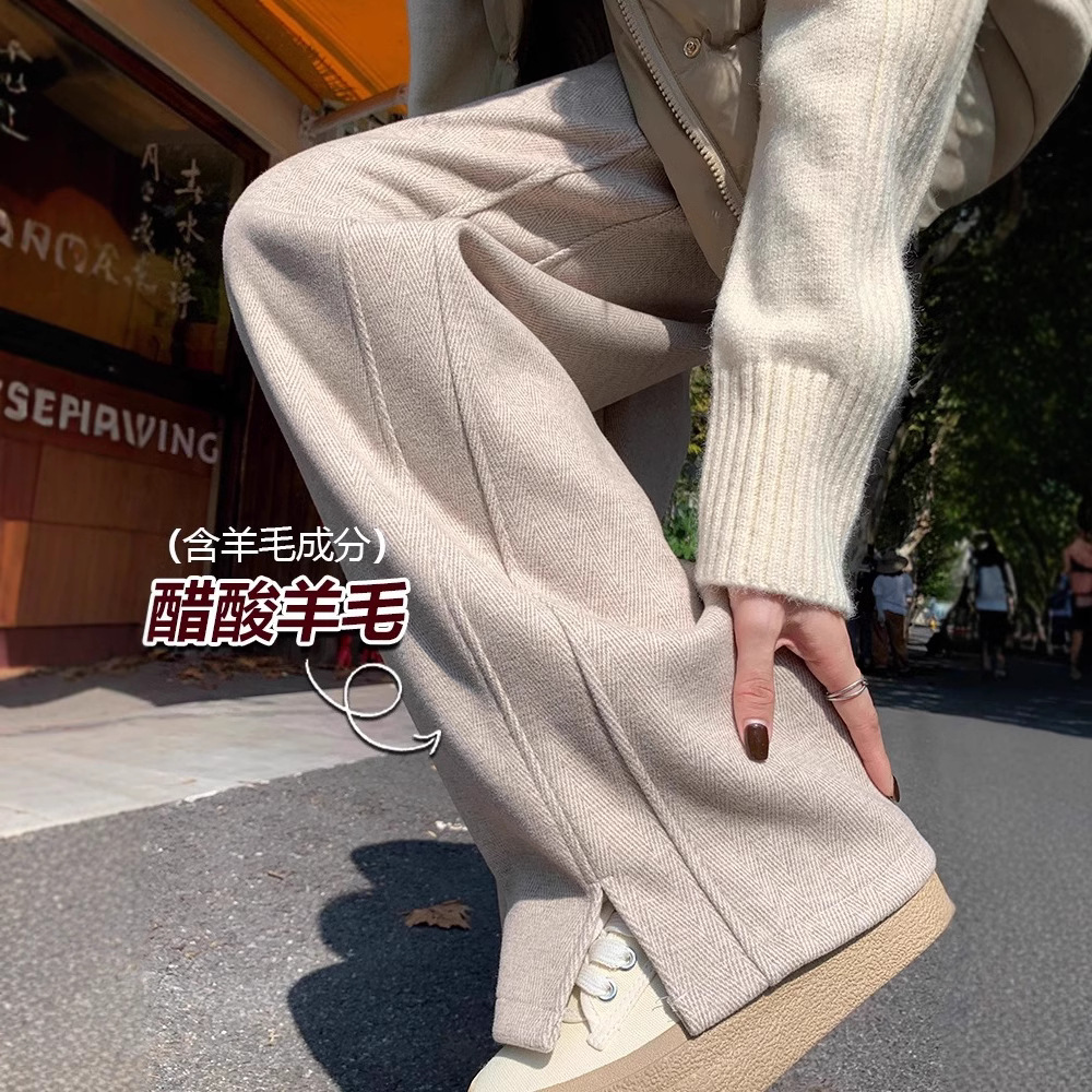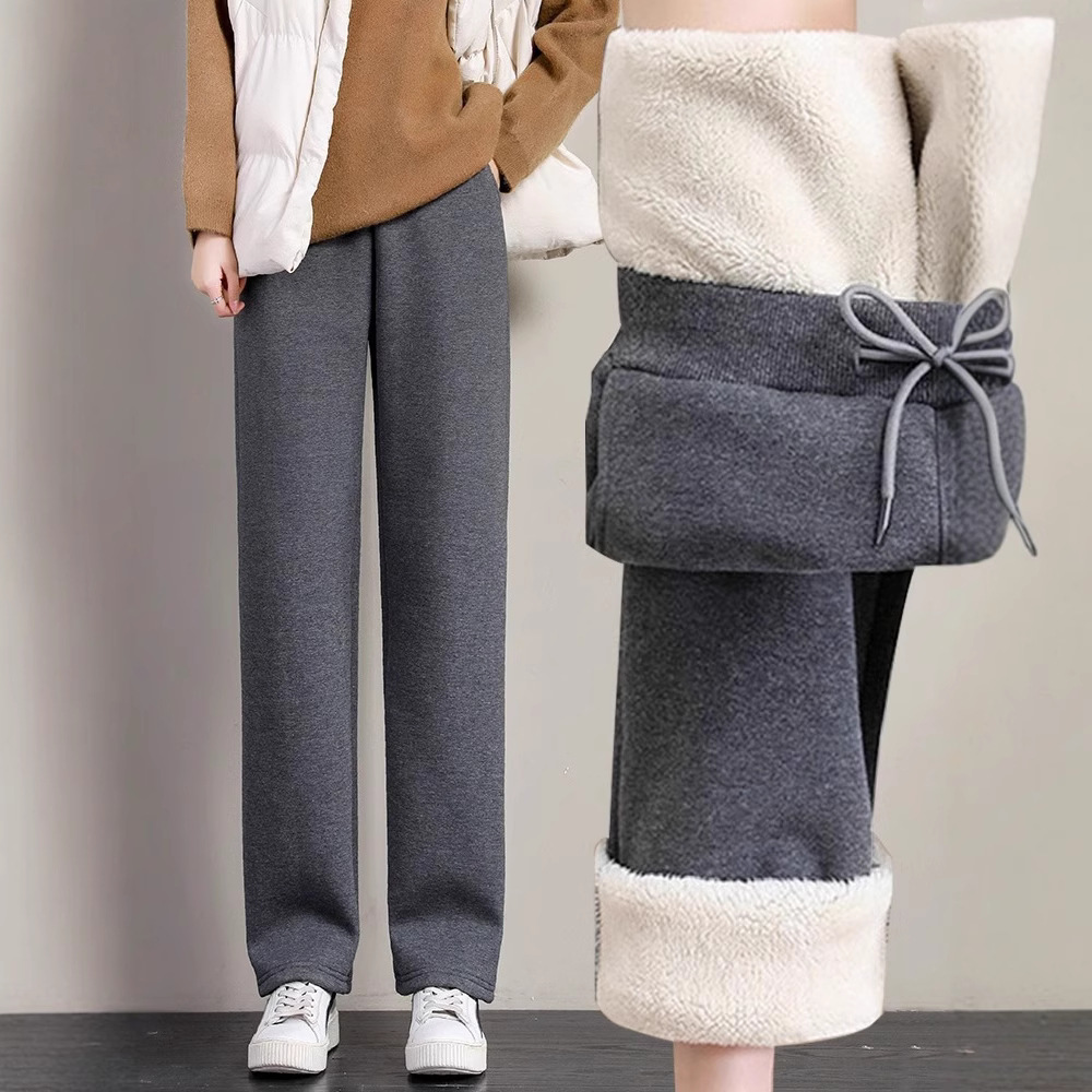 2025年秋冬用女性用裏起毛パンツ、厚手の羊毛混紡コットンパンツ、ゆったりとしたストレートレッグのスポーツパンツ、ワイドレッグパンツ