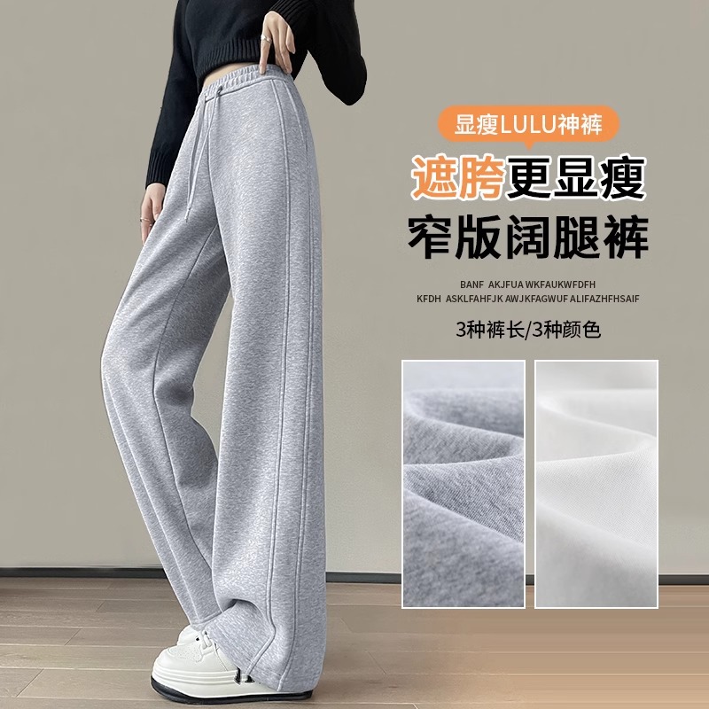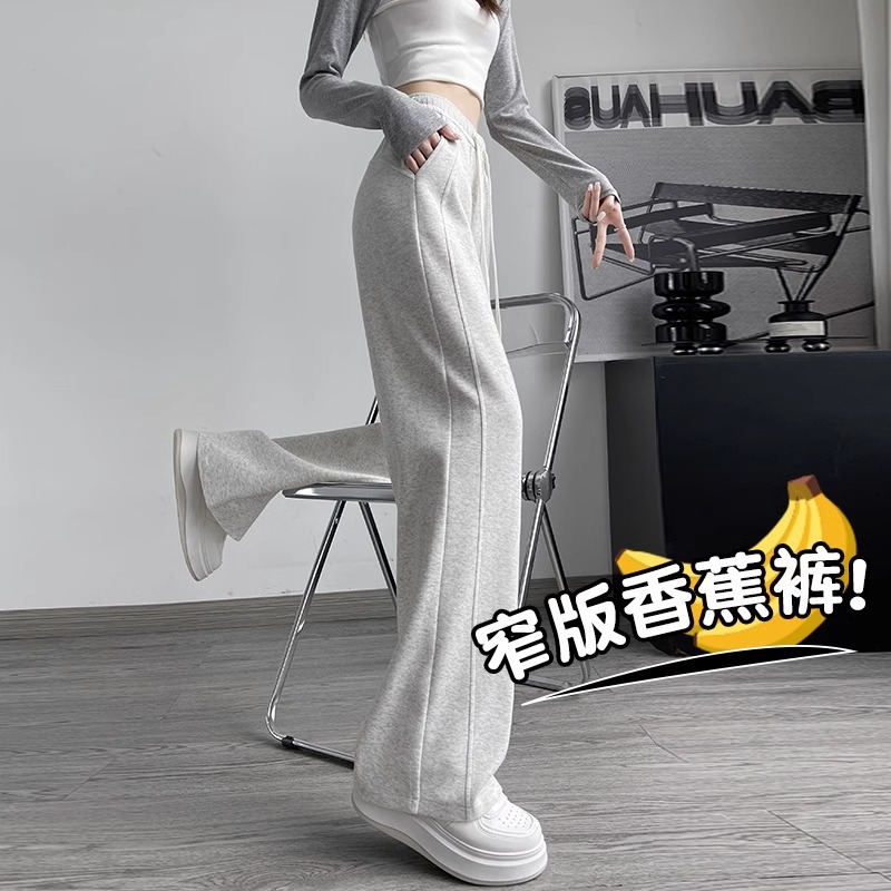 狭いバージョンのバナナのワイドレギンスの女性春秋2025の新型の高腰のまっすぐな筒の衛のズボンのカジュアルな小さい子の灰色のスポーツのズボン