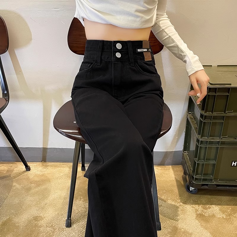 黒いベルベットのジーンズの女性2024年冬の新型高腰直筒の小柄な狭いバージョンのワイドパンツ