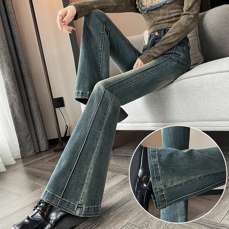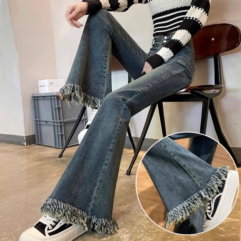 復古流蘇微ラッパジーパン女2025年春秋薄絨毛厚手修身地馬蹄ラッパズボンの子供