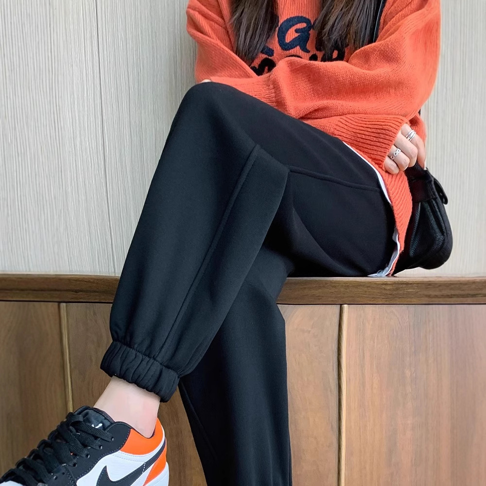 黒のズボンの女性は秋冬2024の新しいゆるい束の足が痩せているスポーツパンツのカジュアルなベルベットのズボンの女性は冬のファッションです