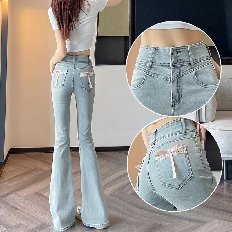 お尻を上げるミニラップジーンズの女性2025年春秋加毛修身ギャル蜜桃お尻馬蹄ラッパズボン