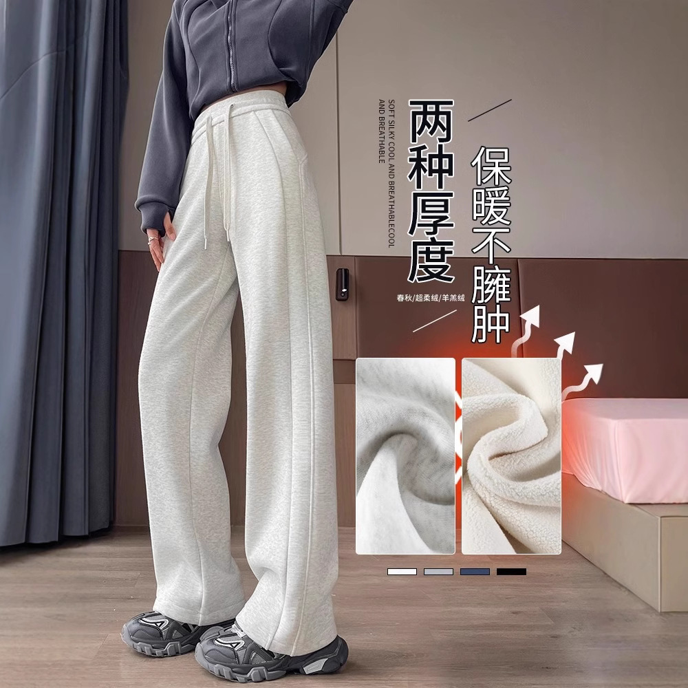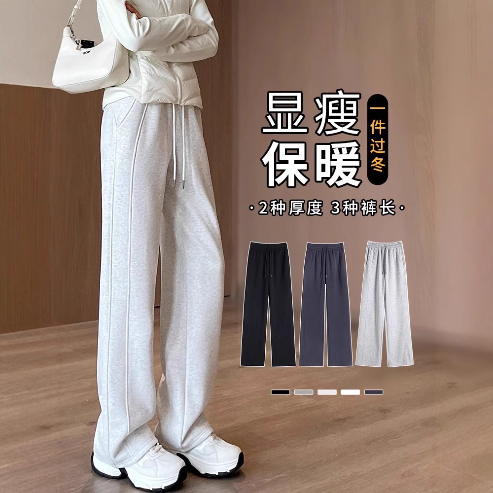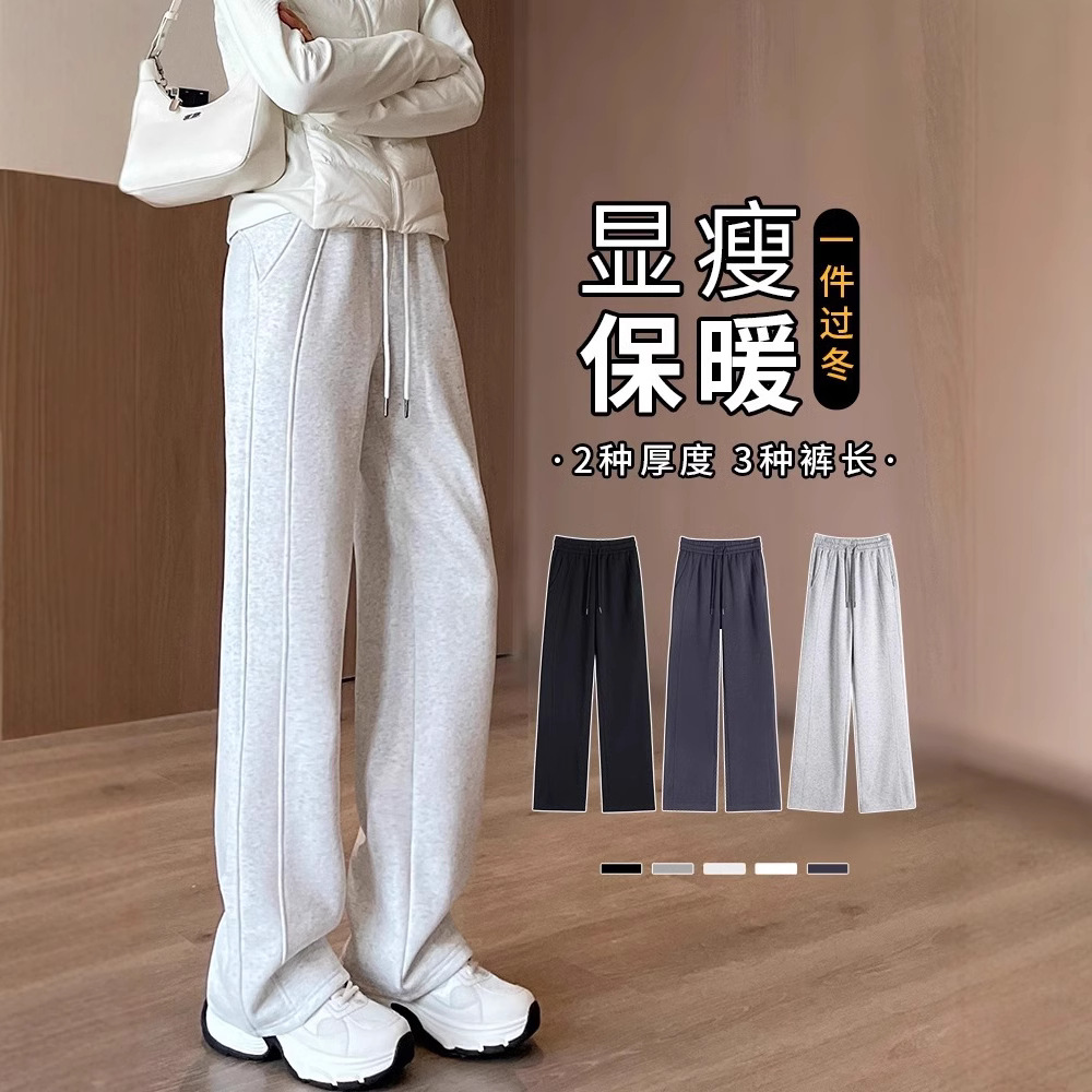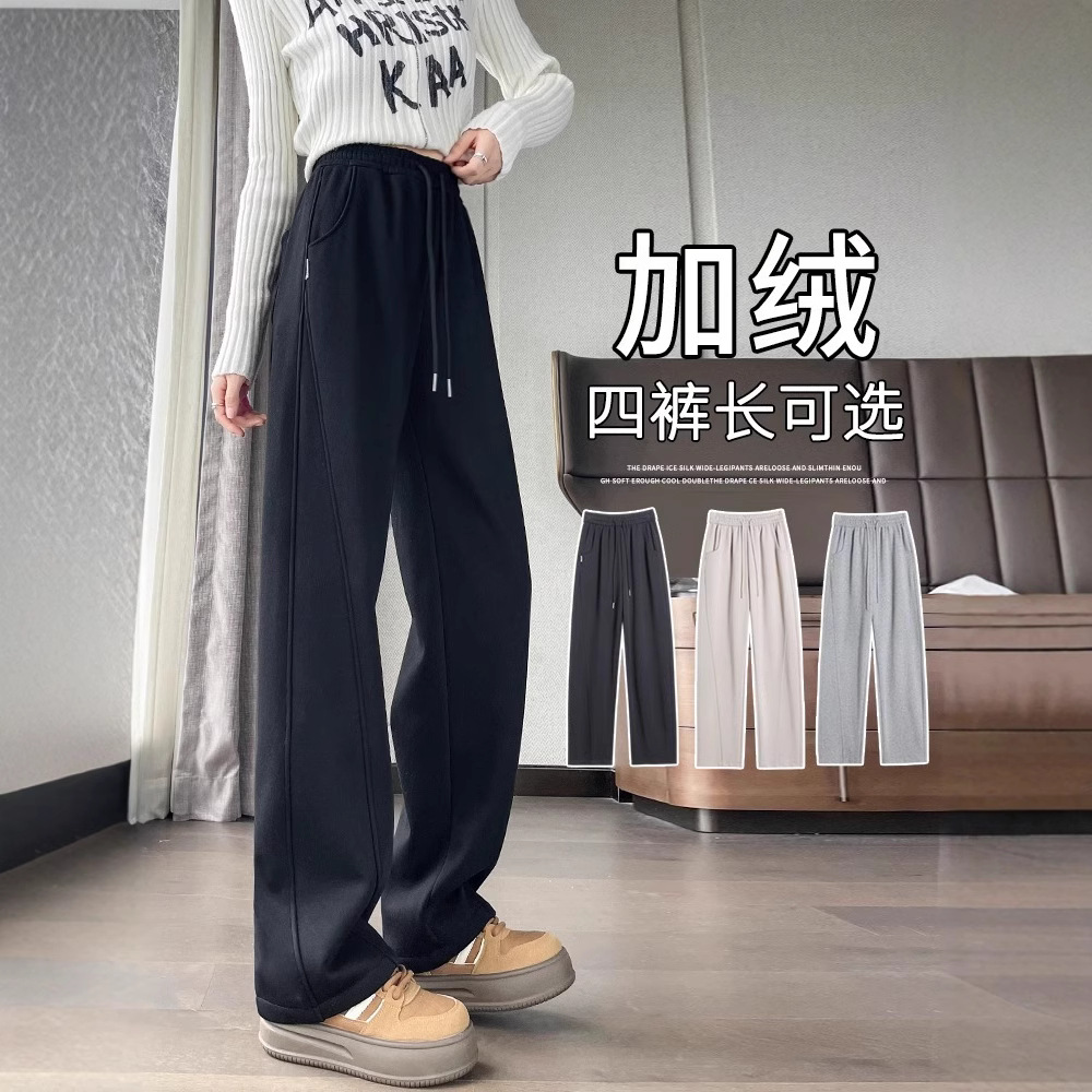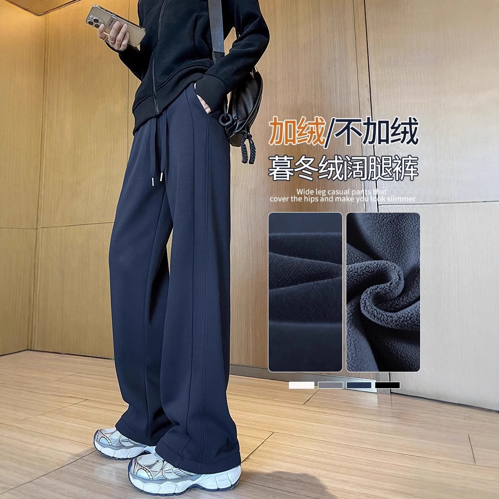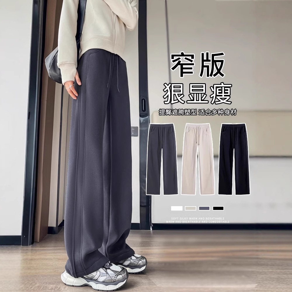 スポーツパンツの女性秋冬2024の新しいベルベットの狭い版のワイドパンツの腰がやせて見えるストレートカジュアルなパンツ