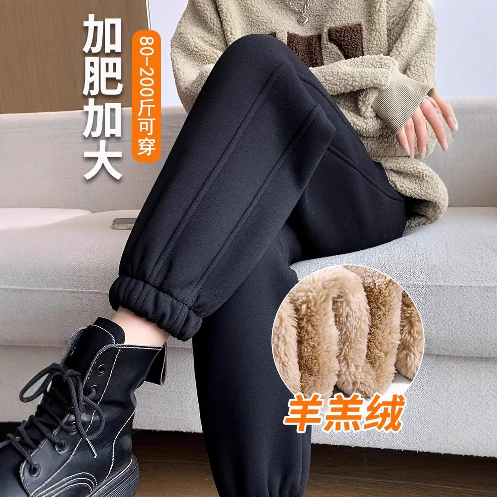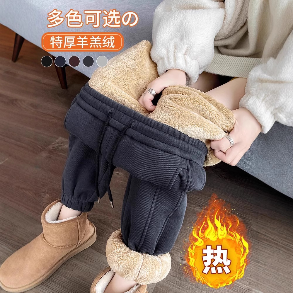 子羊の毛の運動のズボンの女性の秋冬のベルベットの衛のズボンの2024の新型のズボンは厚い防風のズボンの冬の外で綿のズボンを着ます。