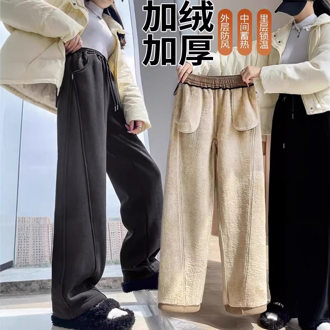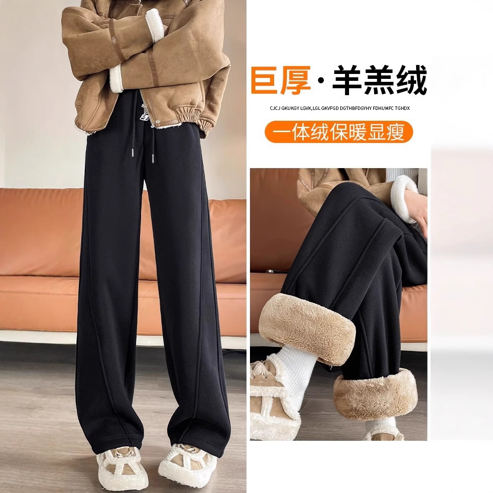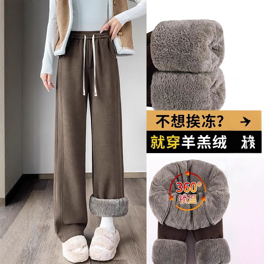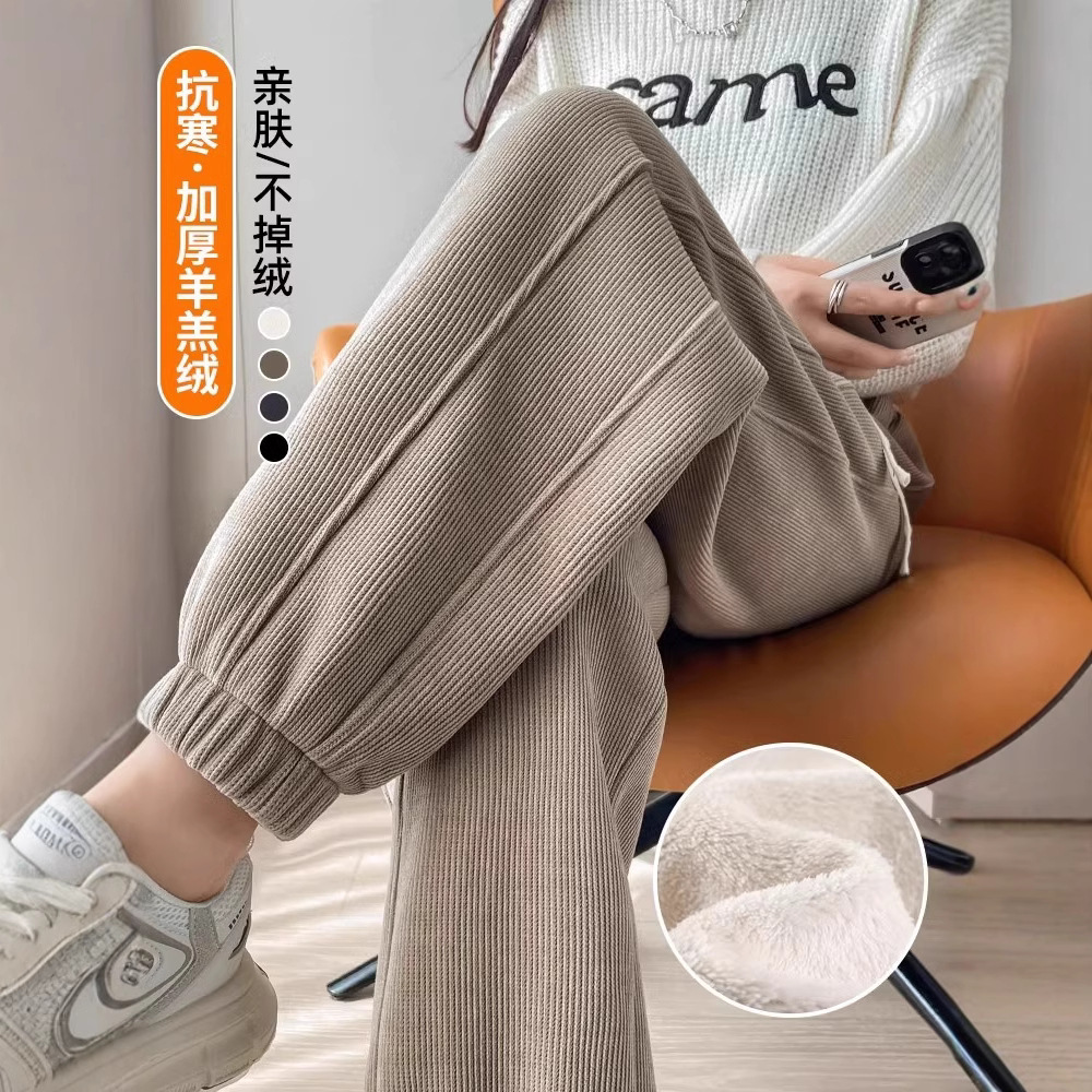 ベルベットの厚いワイドパンツの女性秋の冬のストレート一体ベルベットの東北の羊のベルベットの綿のズボンの女性のズボンのスポーツパンツ
