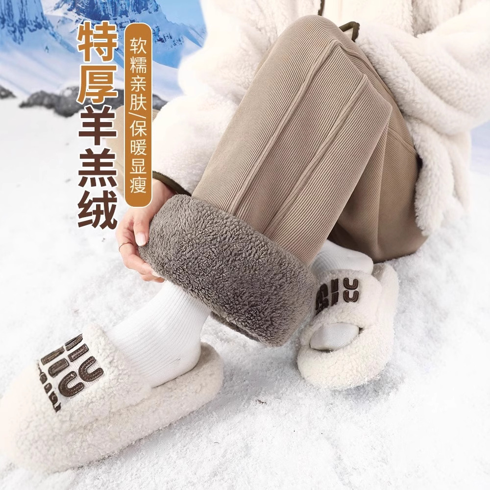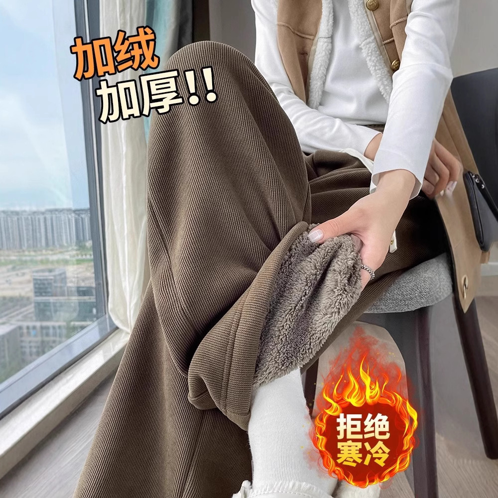 ベルベットのワイドパンツの女性秋冬シェニール直筒保温羊のベルベットのズボンは冬に東北の厚い綿のズボンを着る
