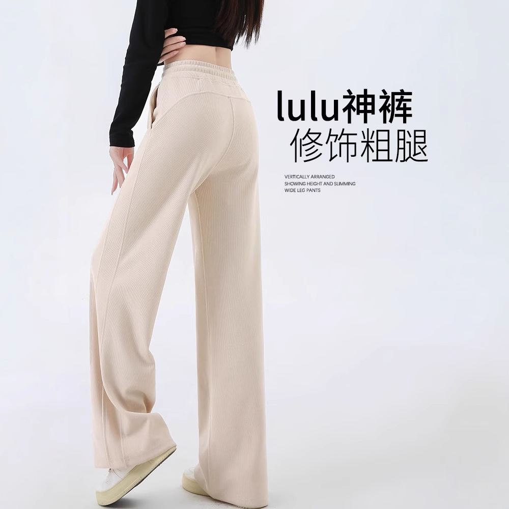 ワイドパンツの女性の春と秋の冬の2024の新型のハイウエストの垂れ下がった感じはやせているストレートのカジュアルなズボンの保温の狭い版のバナナのズボンを現します。