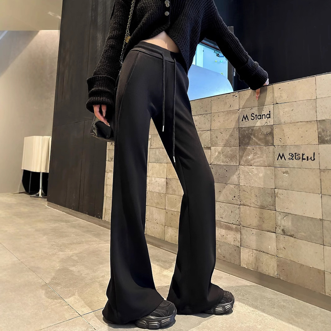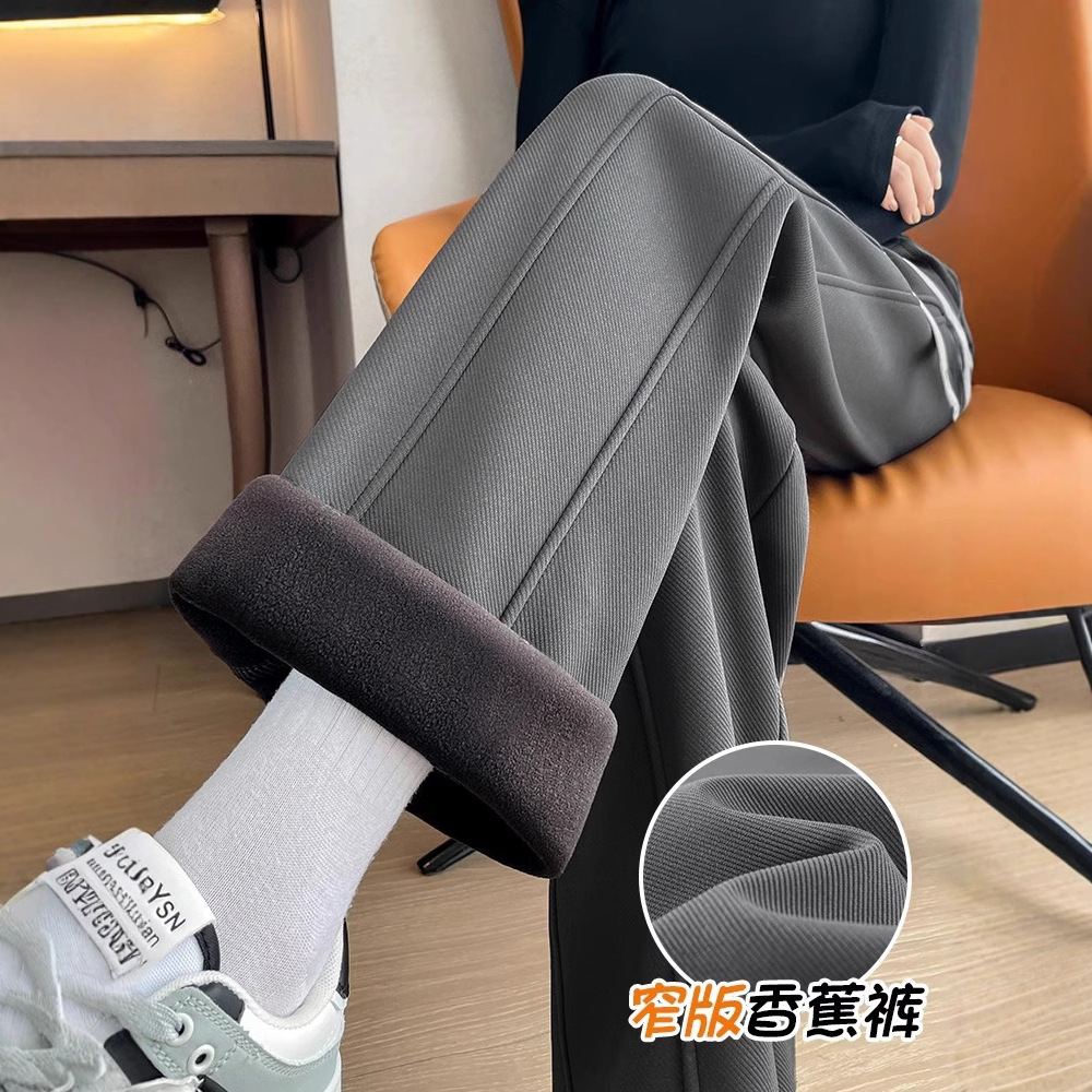 バナナの広脚ズボンの女性秋冬とベルベットの金2024の新型の小柄な垂直感のある衛ズボンのカジュアルな狭い版の運動ズボン