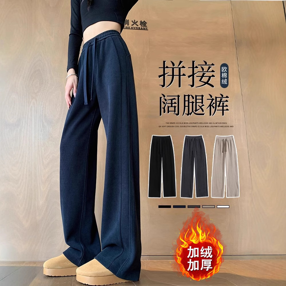 ベルベットのワイドパンツの女性秋冬2024の新しいシェニールの垂れ下がった感じの小さい冬はカジュアルなストレートパンツを厚くします