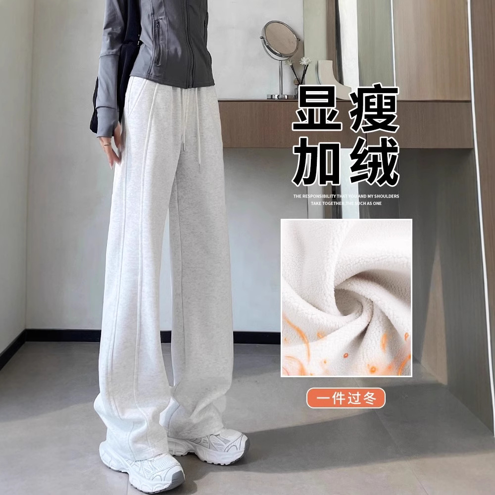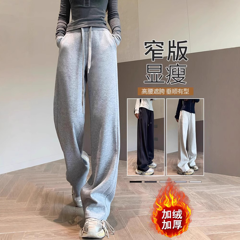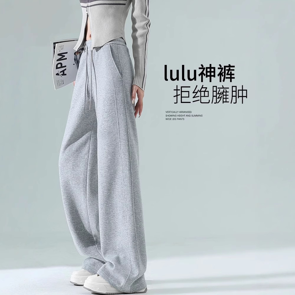 ベルベットの灰色のワイドパンツの女性秋冬2024の新しい狭いバージョンのストレートゆるいカジュアルパンツluluスポーツパンツ