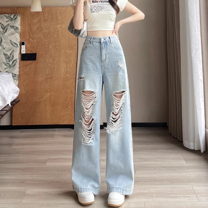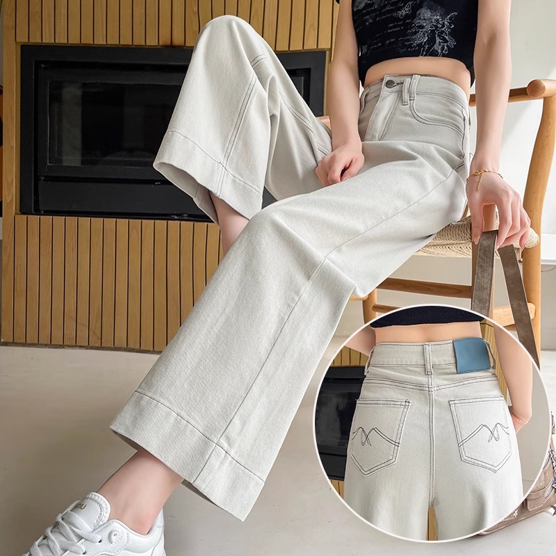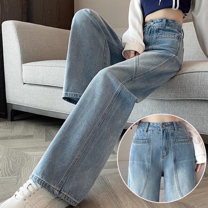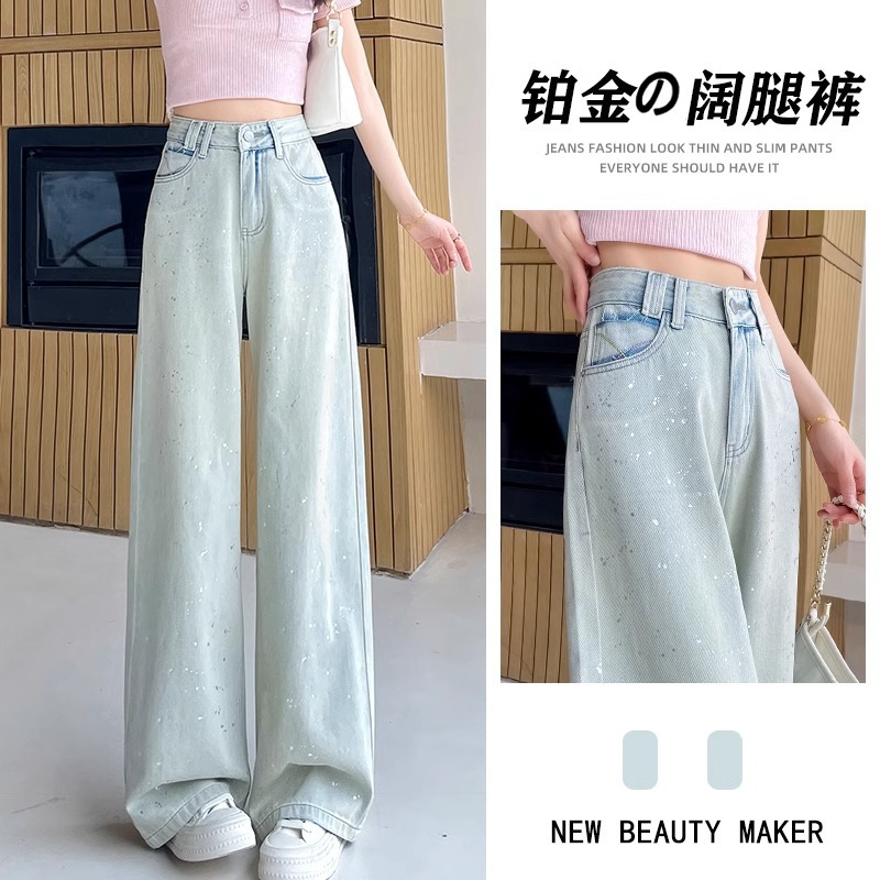 水色のレトロでワイドなジーンズの女性2025春の新しいゆるいアメリカの垂直感があるストレートパンツ