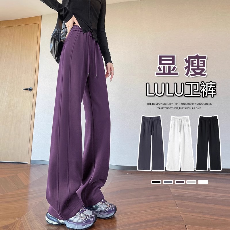 烏梅紫スポーツパンツ女性秋冬2025新型ワイドパンツカジュアルストレート春lulu衛ズボン