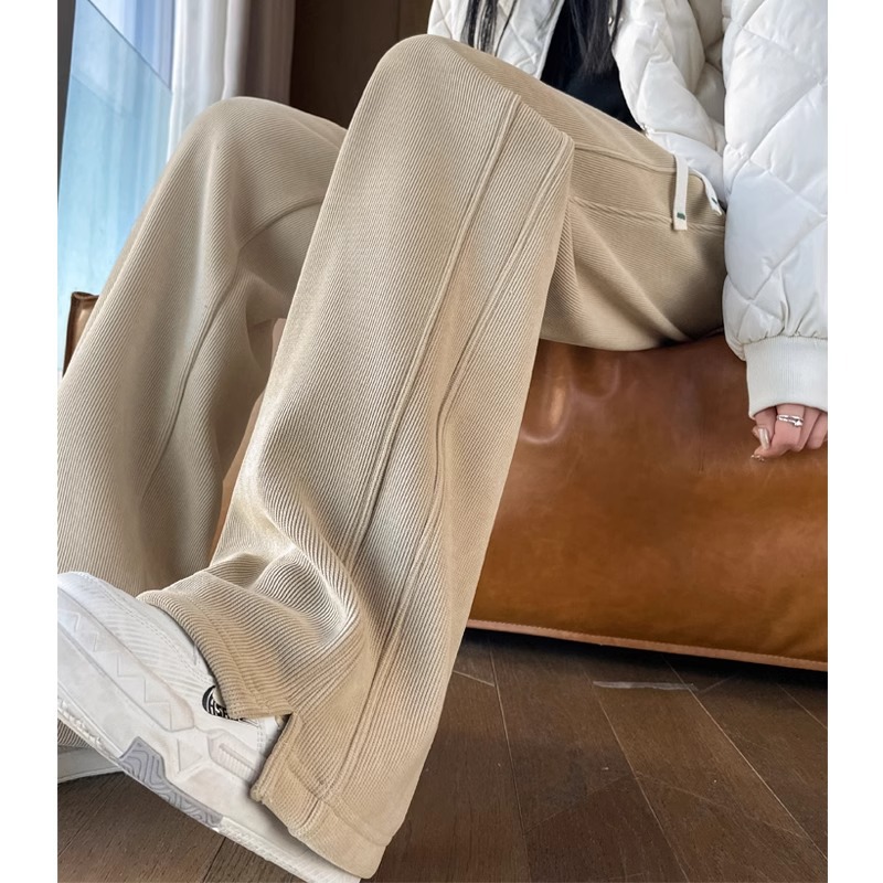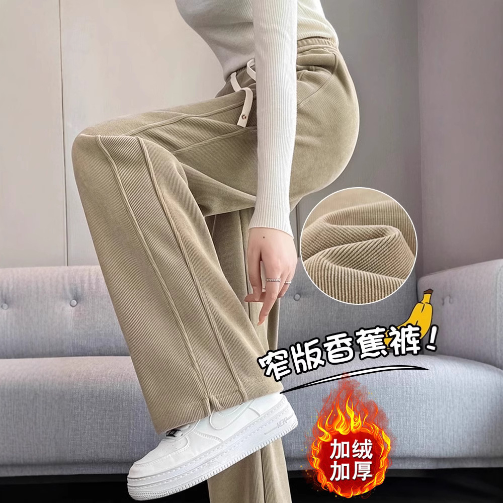 ベルベットのバナナのワイドパンツの女性秋の冬の2024の新しい東北の特厚綿のズボンの小さい背のストレートの運動のズボン