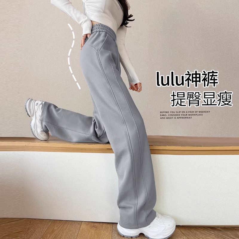 狭い版のバナナの広脚のズボンの女性の春秋2025新型のベルベットのカジュアルなスポーツのズボンのluluの直筒の春の衛のズボン