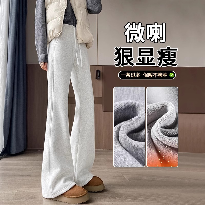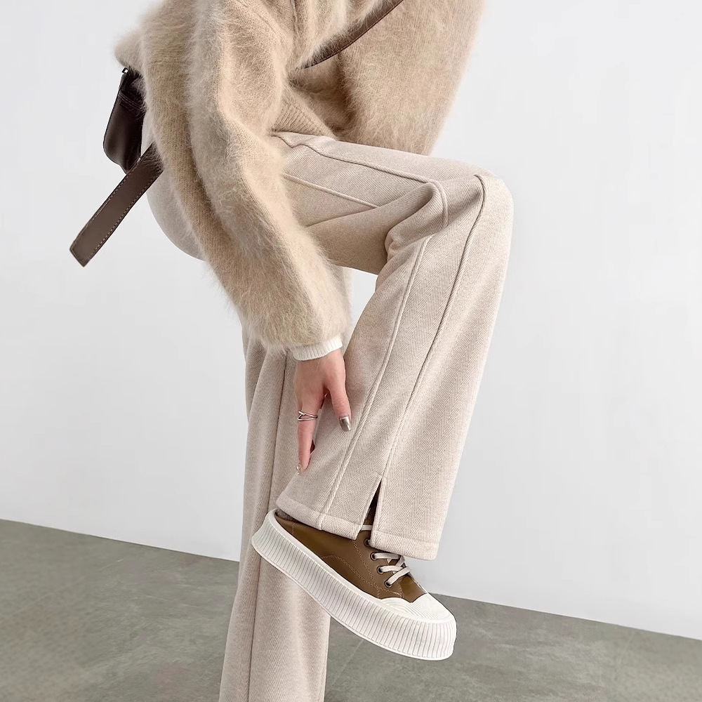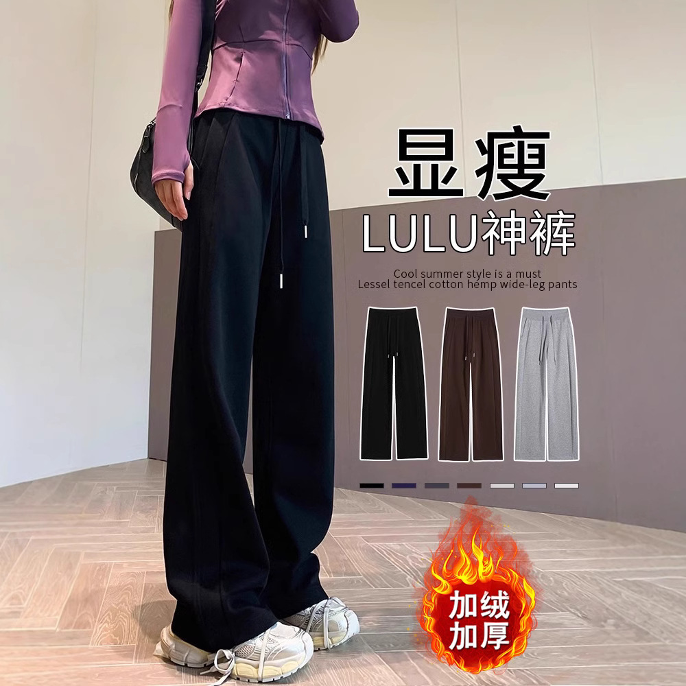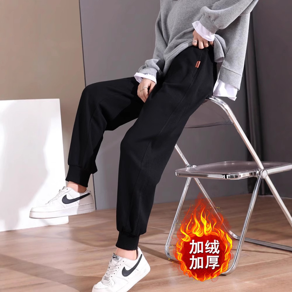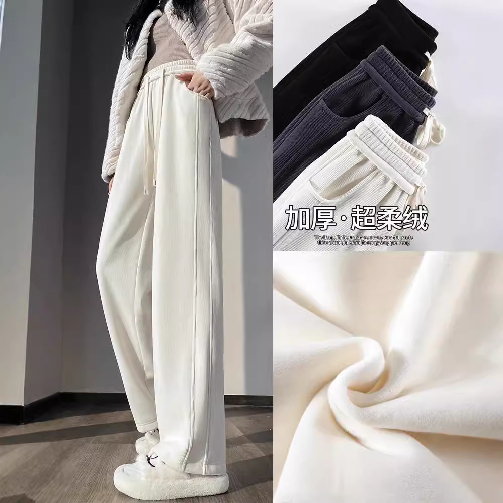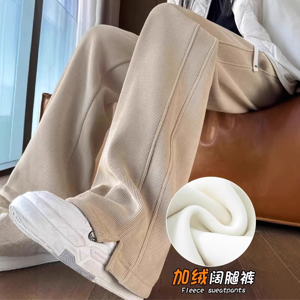 ワイドパンツ女性2025新型秋冬狭版運動ストレートバナナズボン冬にベルベットを厚くしたベルベットズボン