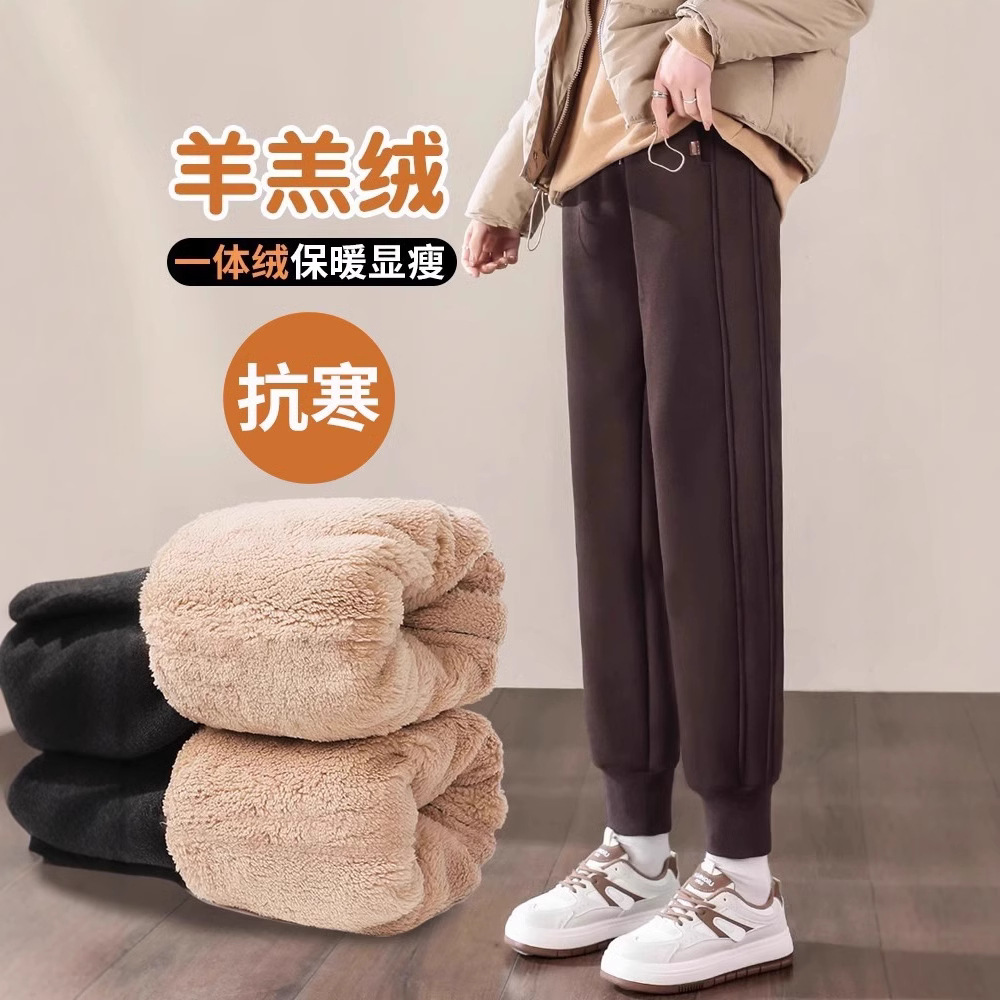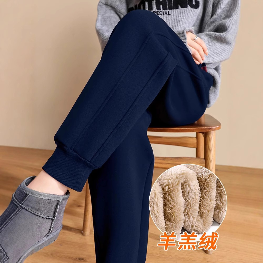 ベルベットの羊のベルベットのスポーツパンツの女性は冬に2024の新しい綿のズボンをカジュアルに着て保温した一体のベルベットの足のズボンを着ている