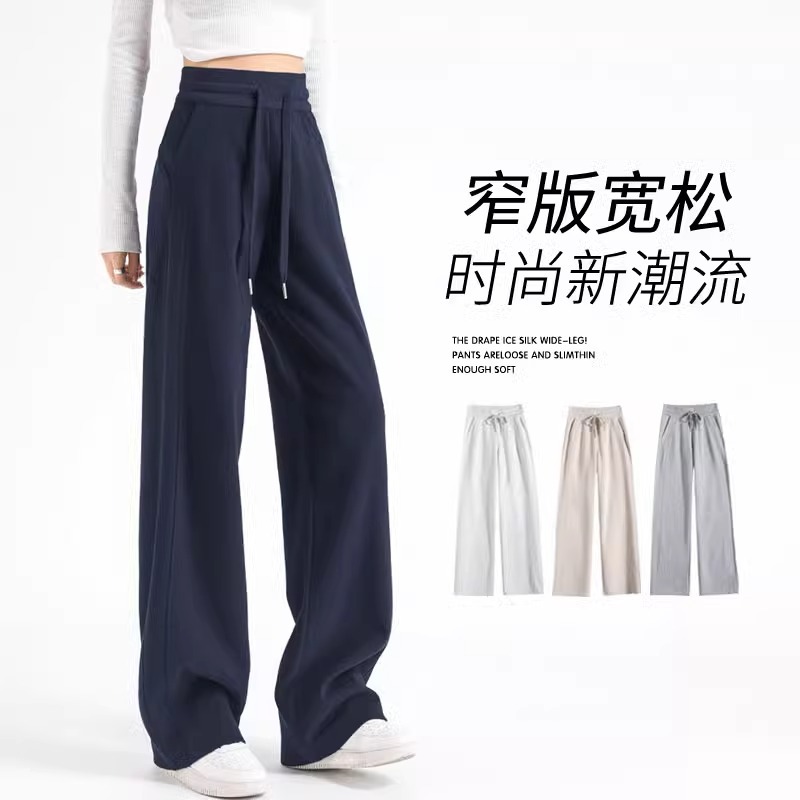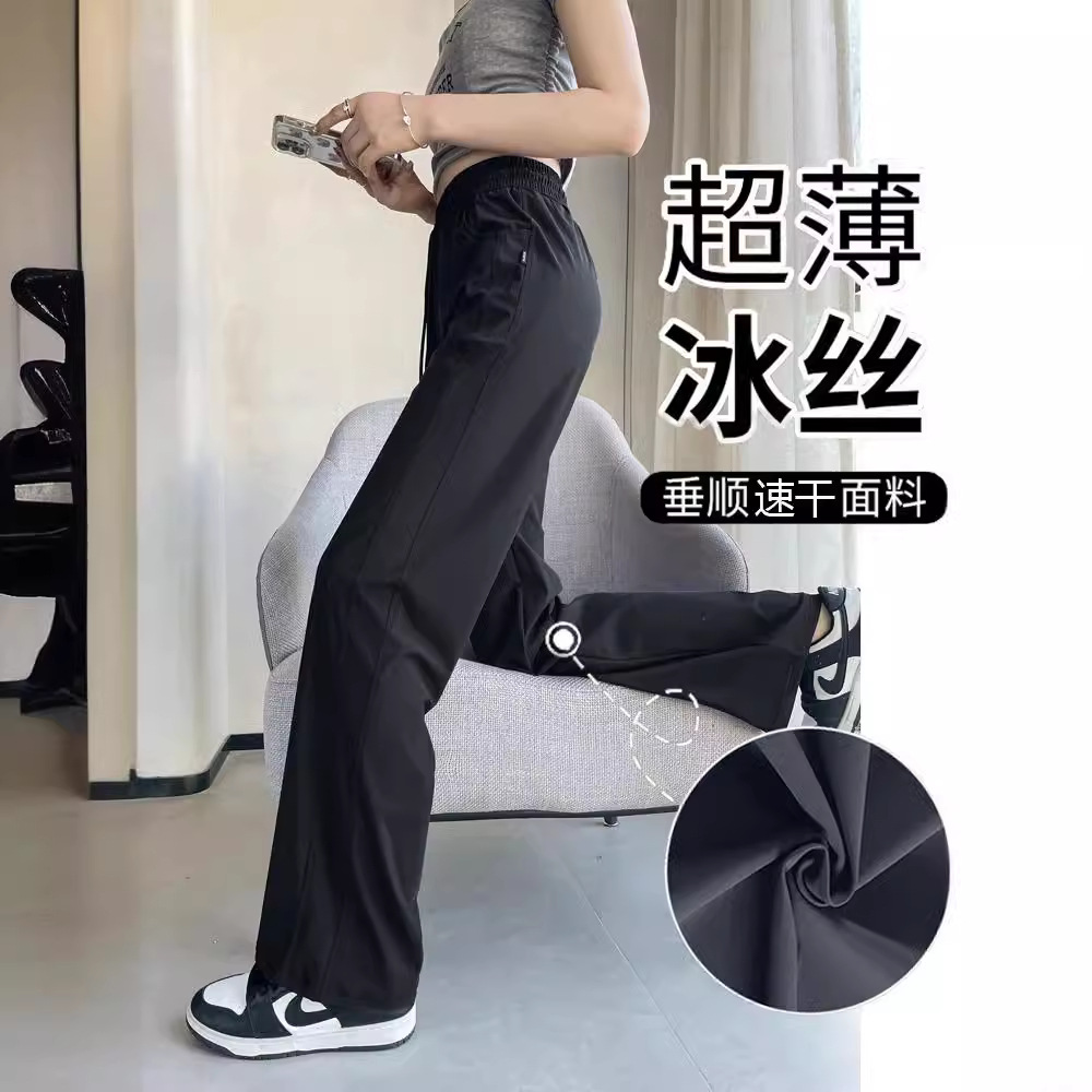 氷のズボンの女性の夏の薄いタイプのまっすぐな筒の日焼け止めのズボンの高い腰の垂れ下がった感の通気性の速干の小さい背の狭い版の運動のズボン
