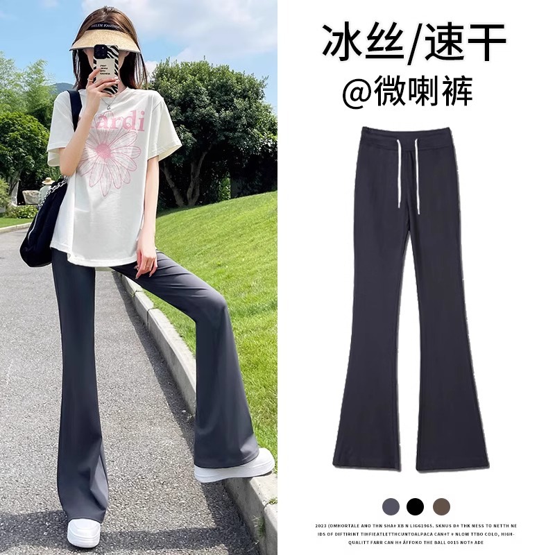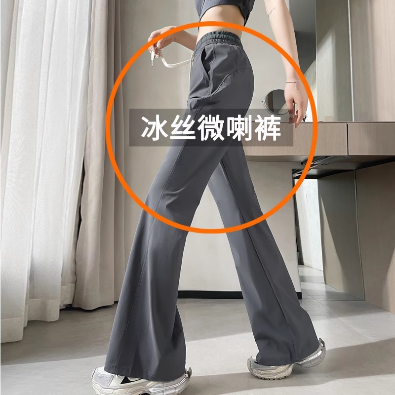 女性用アイスシルクフレアパンツ、夏用薄手速乾日焼け止めマイクロフレアパンツ、カジュアルセガシカワイドレッグスポーツパンツ