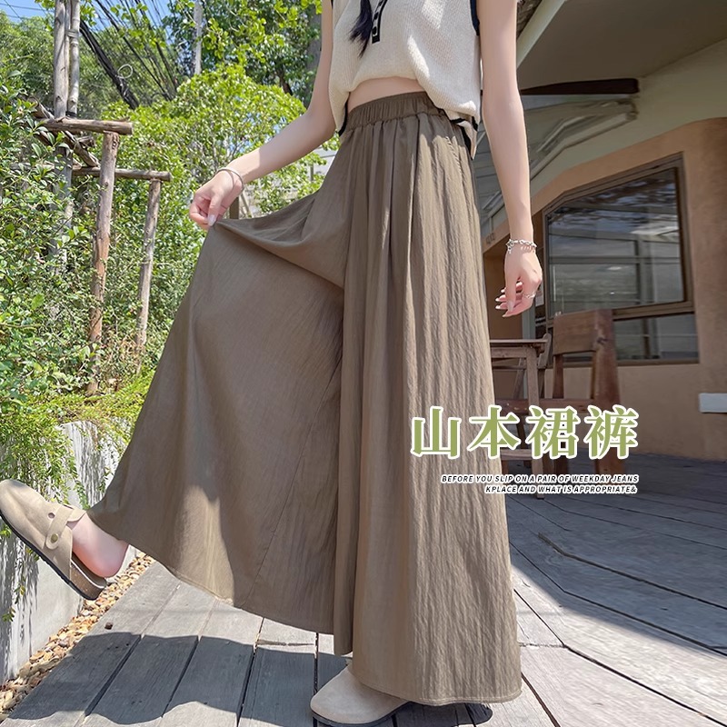 山本パンツスカート女性の夏の 2025 新しいハイウエストスリム A ラインスカートカジュアル小柄なアイスシルクワイドレッグパンツ