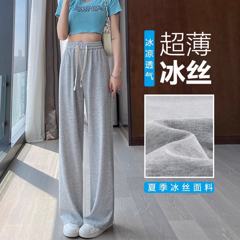 夏薄いアイスシルクワイドレッグスポーツパンツ女性のための 2025 新しいルーズ痩身カジュアルハイウエストストレートパンツ