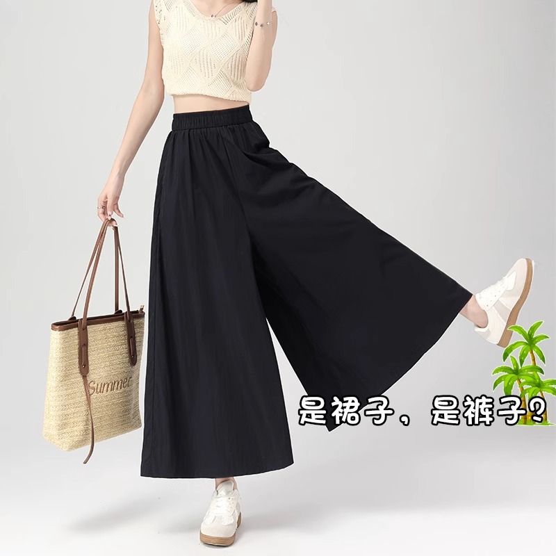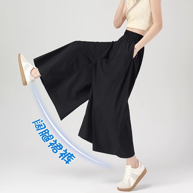黒山本キュロット女性の 2025 新しい夏薄い痩身 A ラインスカートハイウエストドレープワイドレッグパンツ