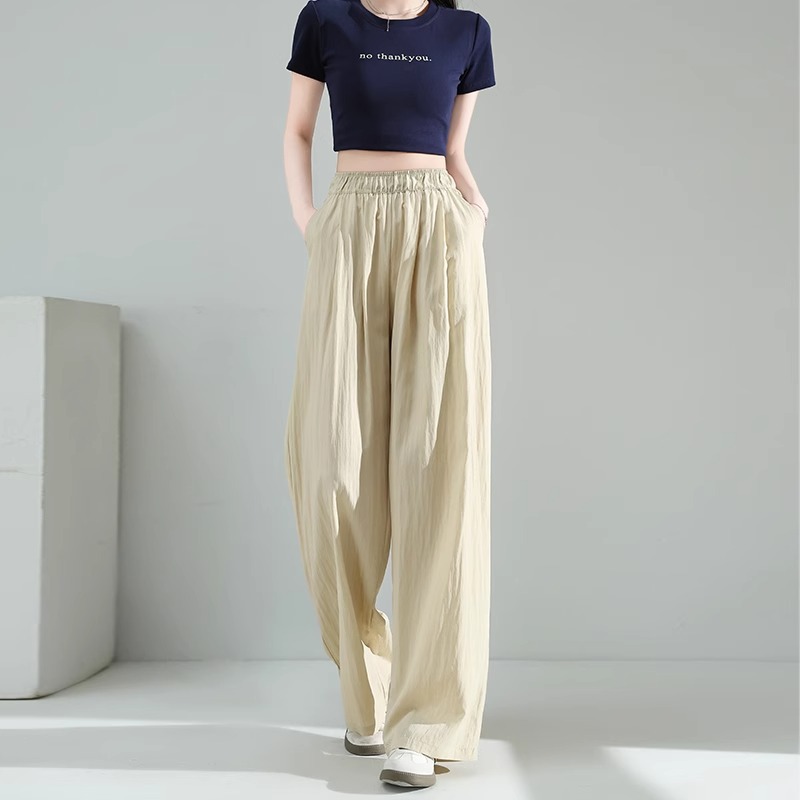 夏用薄い防蚊日焼け止めパンツ、女性用アイスシルクワイドレッグパンツ、女性用ルーズストレートカジュアルパンツ、女性用クールパンツ
