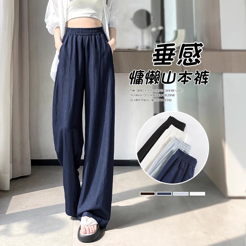 アイスシルク山本スカート女性の夏薄い 2025 新しいハイウエストスリムドレープ小人ストレートワイドレッグパンツ