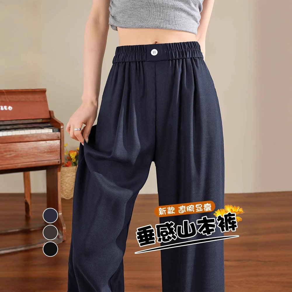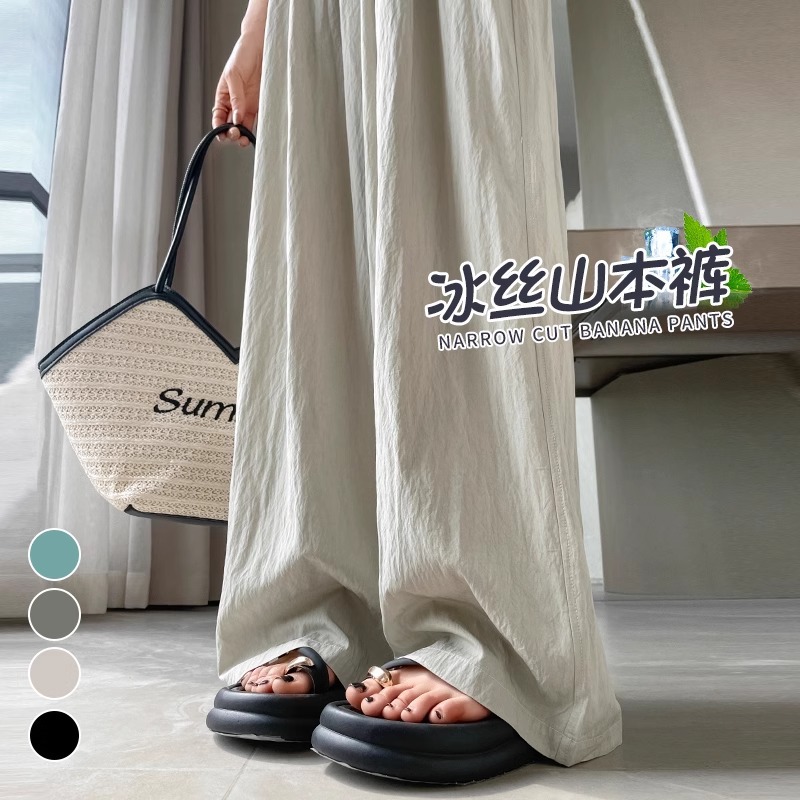 ドレープ山本パンツ女性の 2025 新しい夏ナローバージョンアイスシルクルーズストレートカジュアル怠惰なハイウエストワイドレッグパンツ
