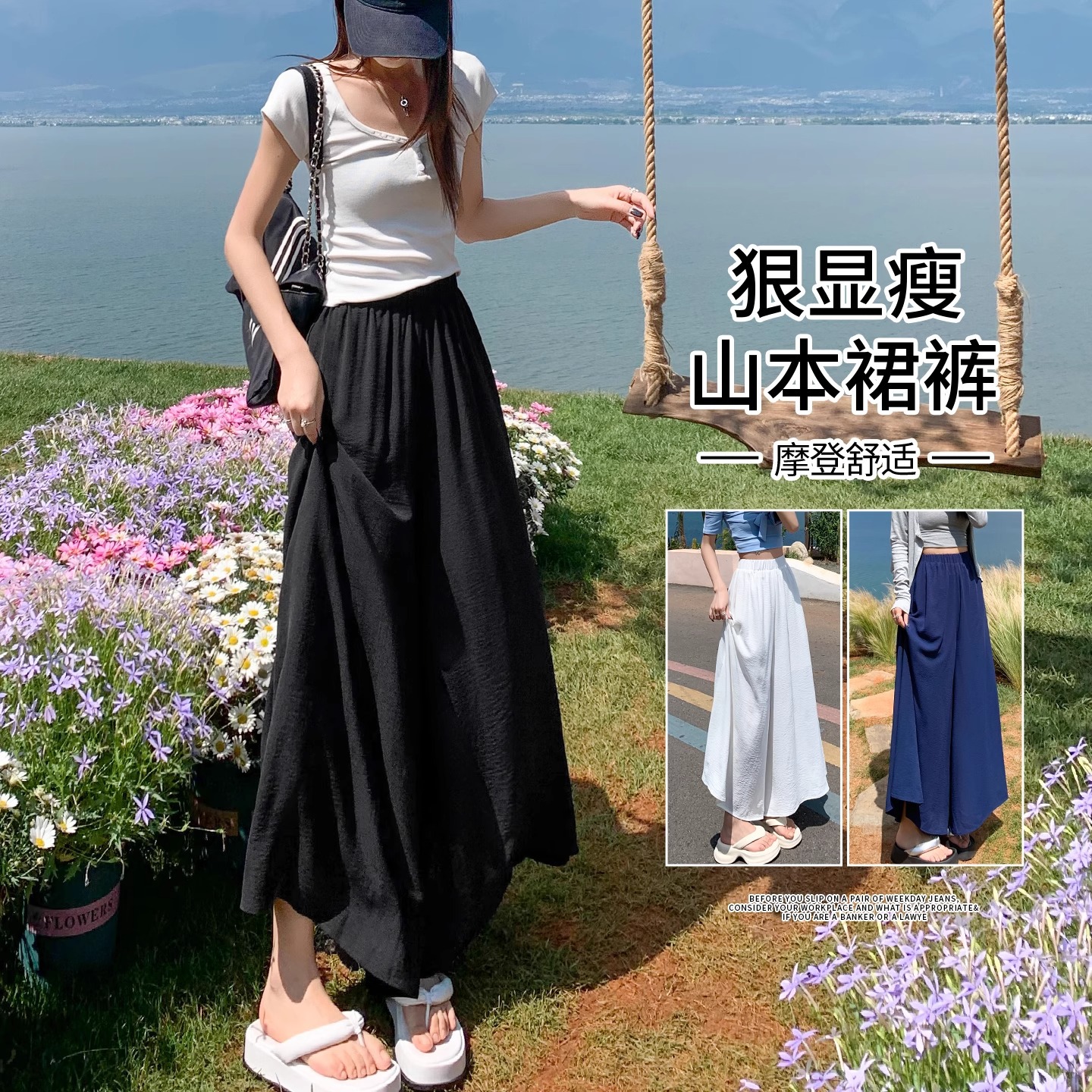 アイスシルク山本スカート女性の夏薄い 2025 新しいハイウエストスカート小リネン日焼け止めワイドレッグパンツ