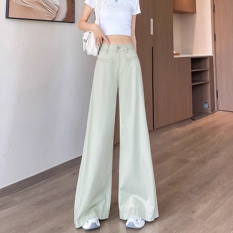 抹茶グリーンテンセルワイドレッグジーンズ女性のための 2025 夏薄いドレープドーパミングリーンアイスシルクストレートパンツ