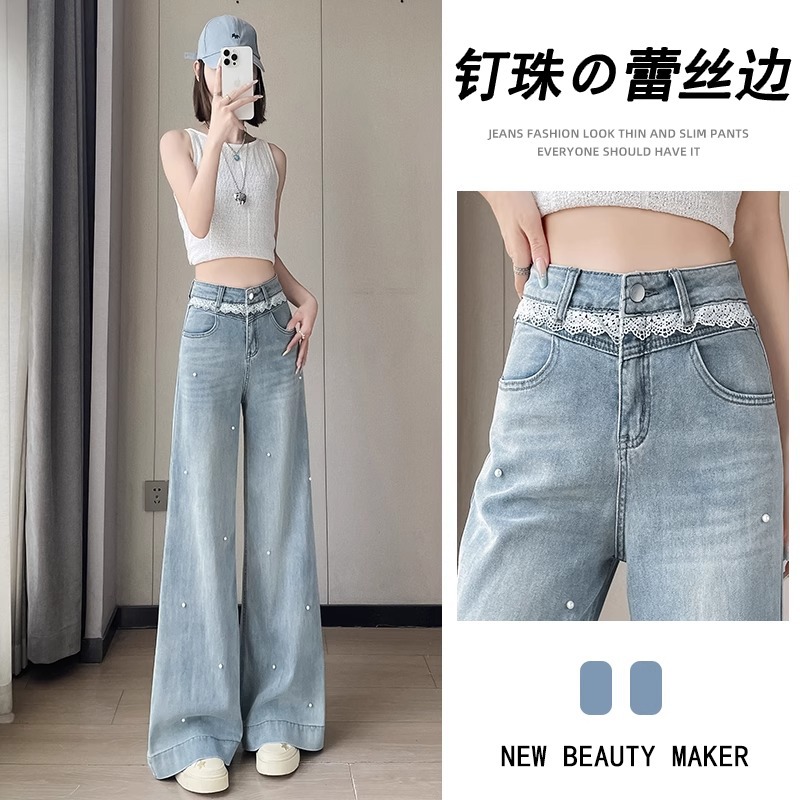 ビーズテンセルワイドレッグジーンズ女性のための 2025 夏超薄型リヨセルレギンスレースフラッグパンツ