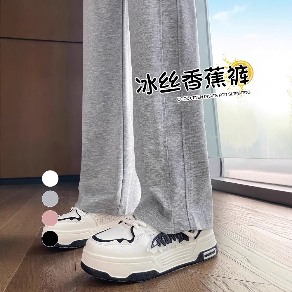 アイスシルクワイドレッグパンツ女性の夏薄いハイウエストバナナパンツ 2025 新しいストレート速乾性クール日焼け止めパンツ