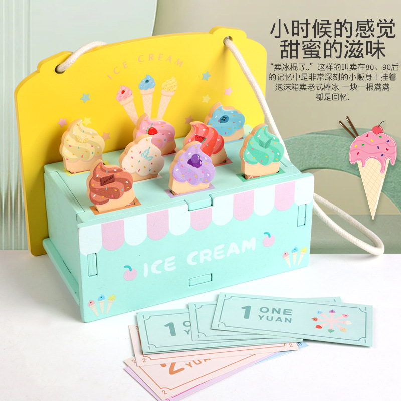 子供の教育的で楽しいアイスクリームおもちゃ木製インスタイルシミュレーションアイスクリームコーンままごとおもちゃセット