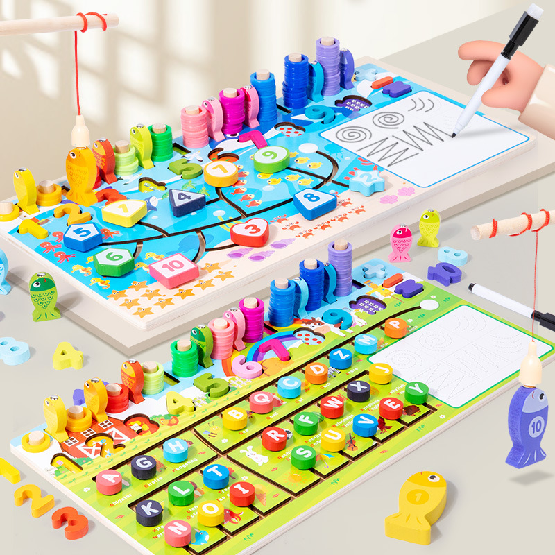 子供の趣味の木のアルファベットの数字は対数板の赤ちゃんの釣りの形をペアにします。
