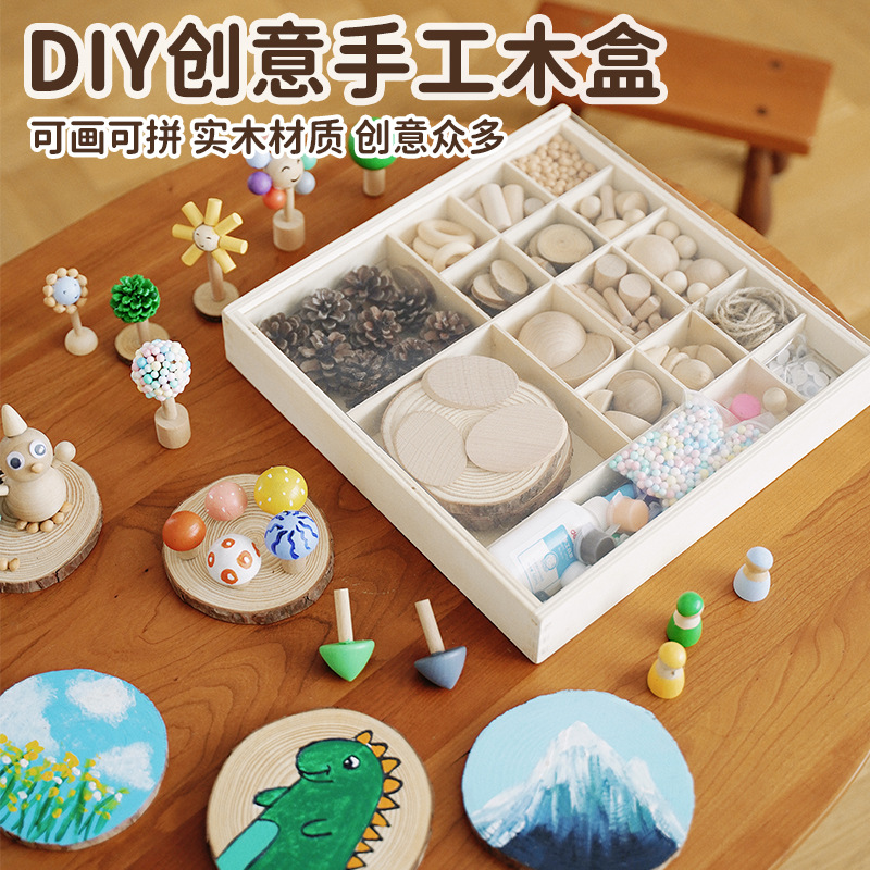 原木手作りdiy落書き盛り合わせ玩具幼稚園低構造区域創意diy自然材料収納付き
