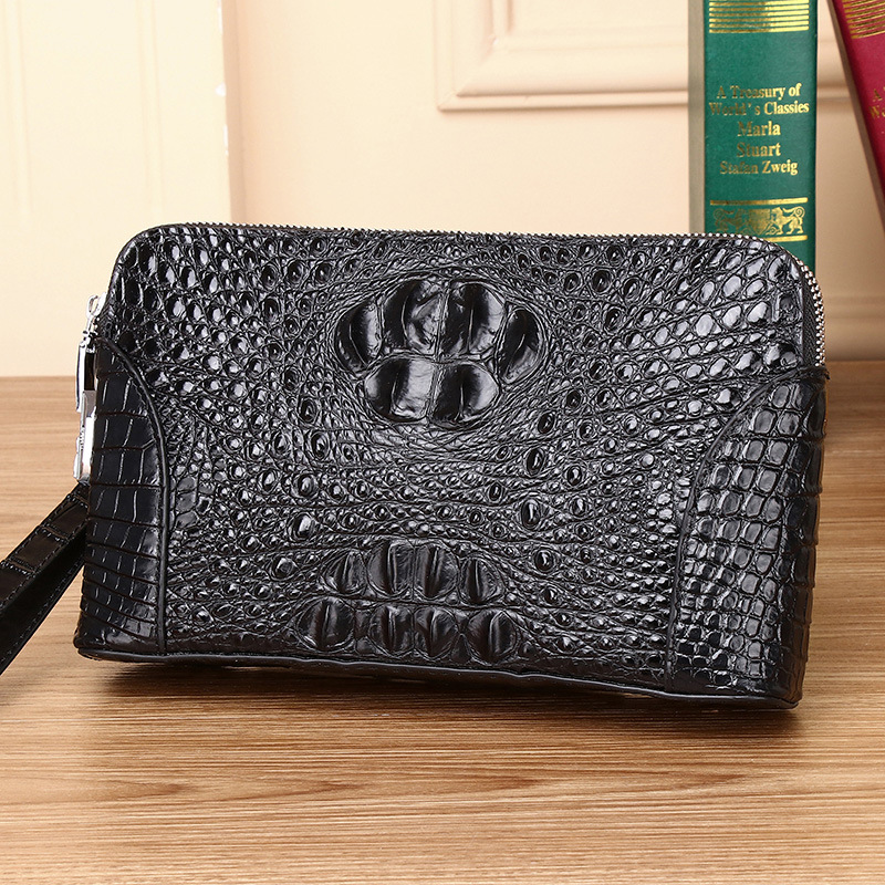新しい本革メンズバッグクラッチバッグクロコダイルボーンカラーマルチコンパートメントトレンディなメンズ手描きファッションコードロッククラッチバッグ