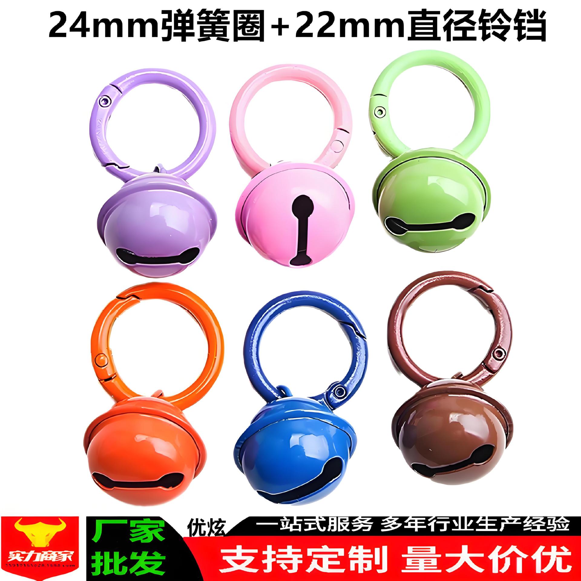 メーカー卸売り金属キャンディー色diyキーホルダーアクセサリークリスマスペンダントカラーバネリング鈴