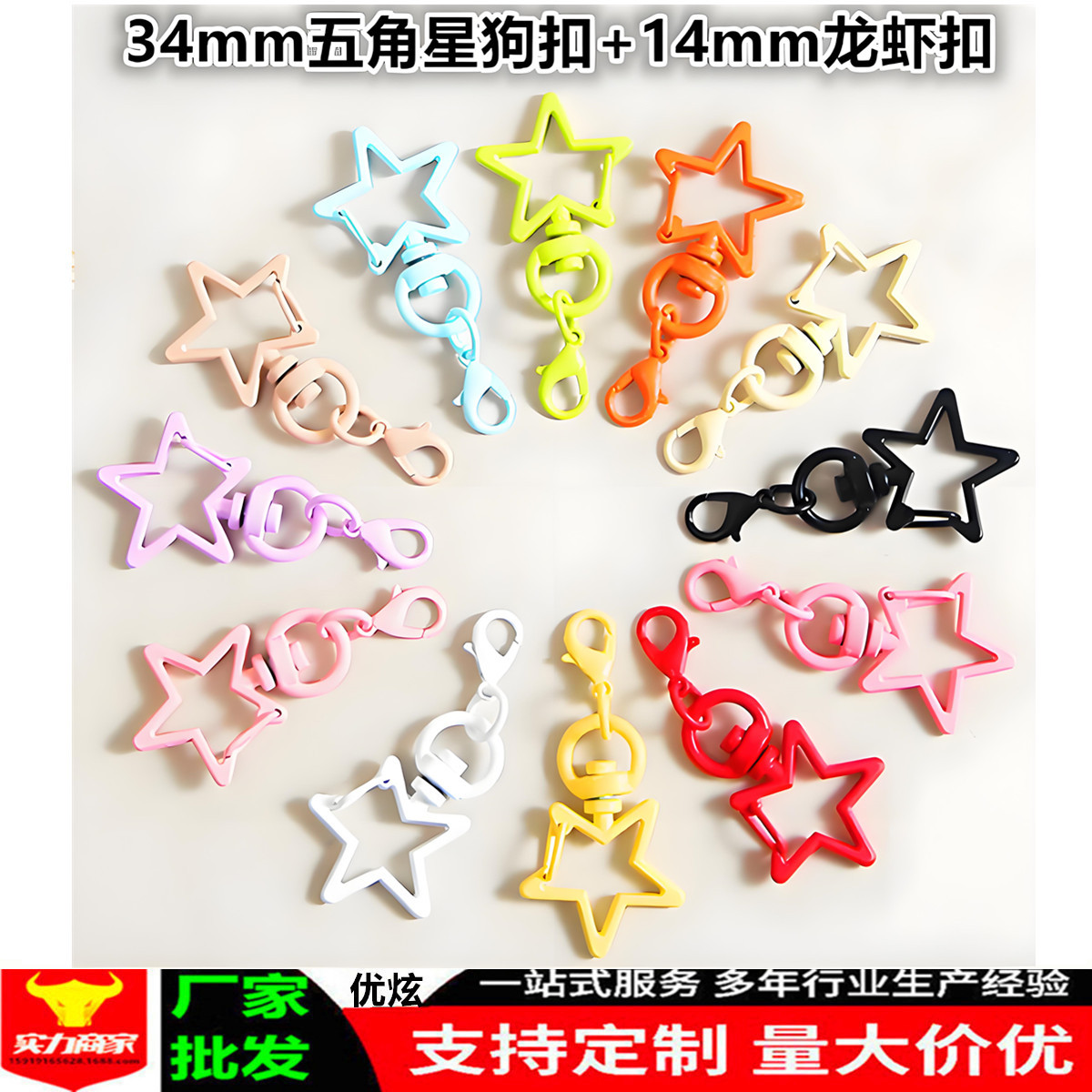 メーカー卸売カラフルなキーホルダーおもちゃ人形 diy ペンダントジュエリーバックルペイント金属五芒星ロブスターバックル