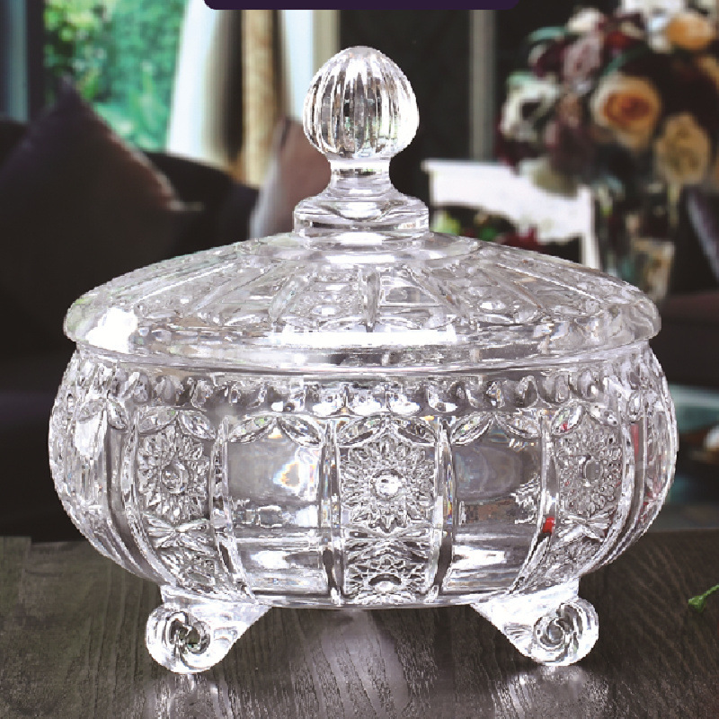 中号水晶ガラス砂糖入れ貯蔵缶ドライフルーツ箱キャンディー瓜子果物皿蓋付き