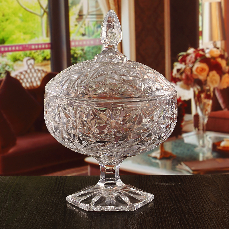 ヨーロッパ風ボヘミアン風水晶ガラス糖果箱果物皿乾果箱糖筒蓋付き貯蔵タンク